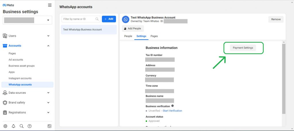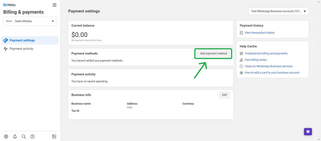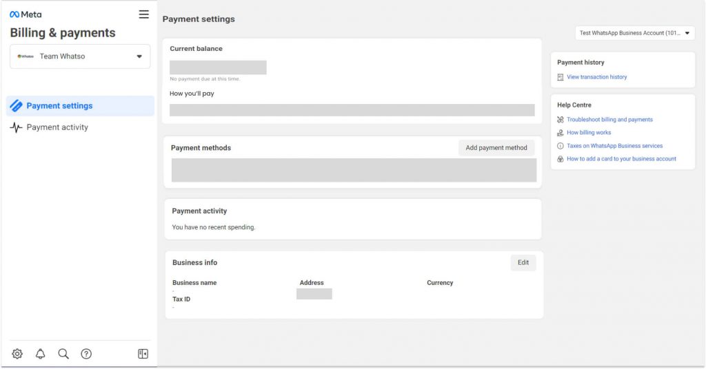 Step 6: Once you add all your card details correctly. Your card will be added to the WhatsApp Cloud account panel.