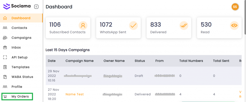 Once you will login in the dashboard, this screen will appear. Here on the left hand side, just click on the “My Orders”.