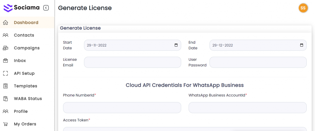 After you click on “Generate License”, below screen will appear. Here, you can select the start date and end date of the license. Also, herein license email, you have to fill your customers email and create password as well.
