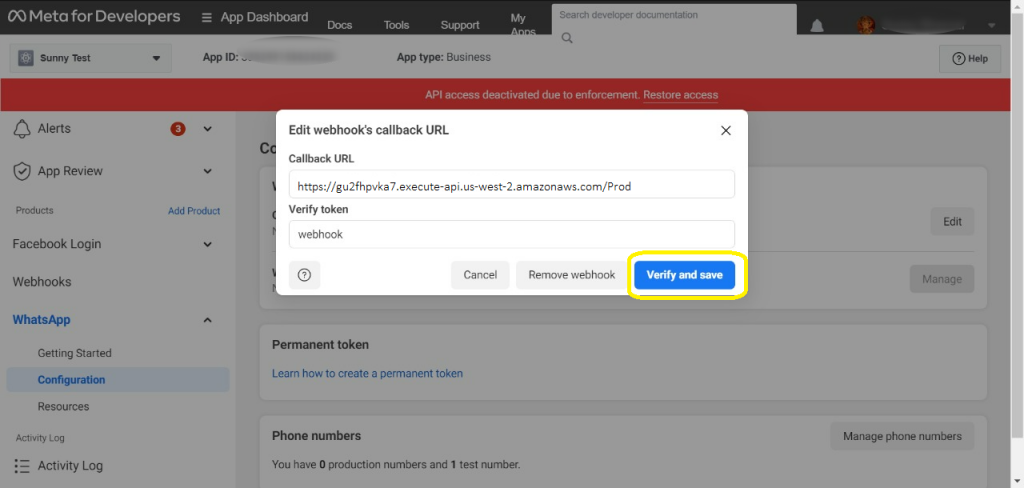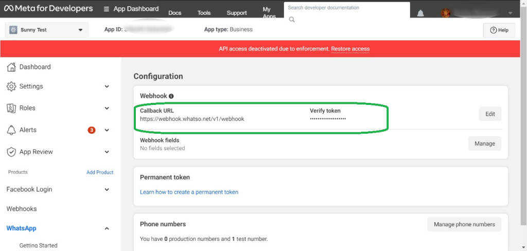 Here You have to Fill “Callback URL” and “Verify Token“. Now you have to click on Verify and save button.