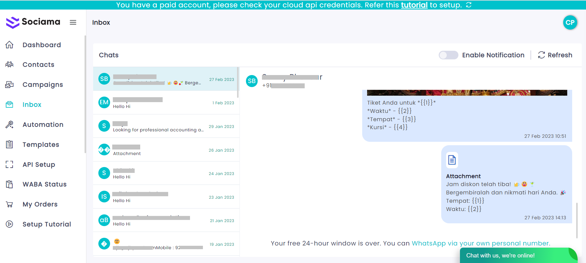 Inbox helps businesses to interact with their customers with the official WhatsApp API. Whenever they respond to your business-initiated message, you will be able to start a conversation with them without incurring charges once you have connected with your customers.